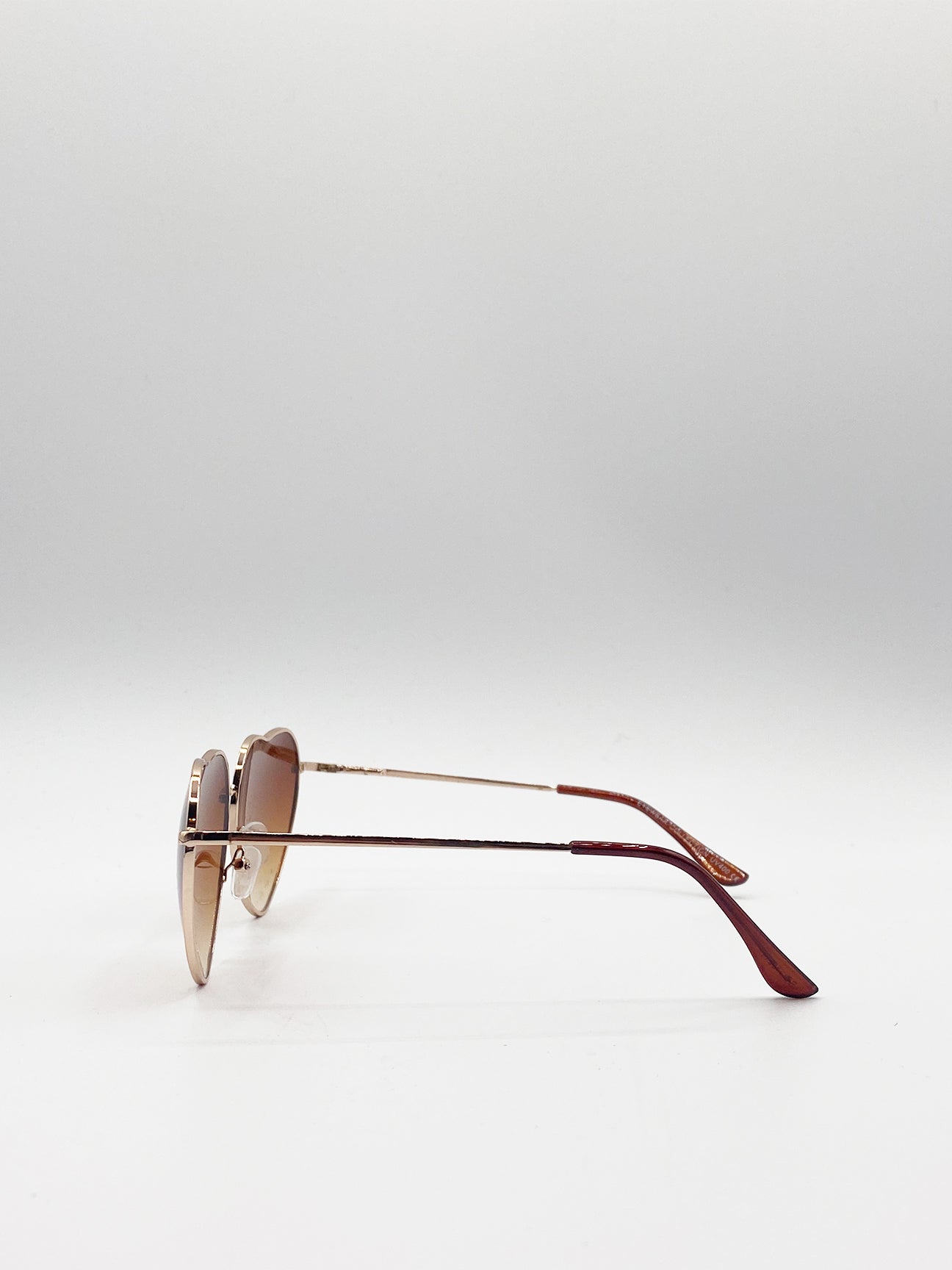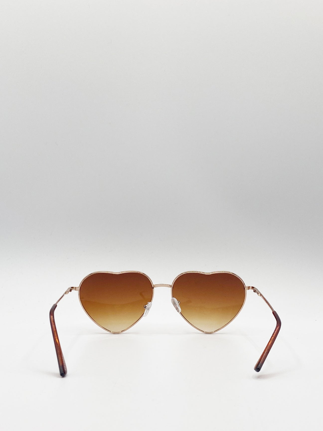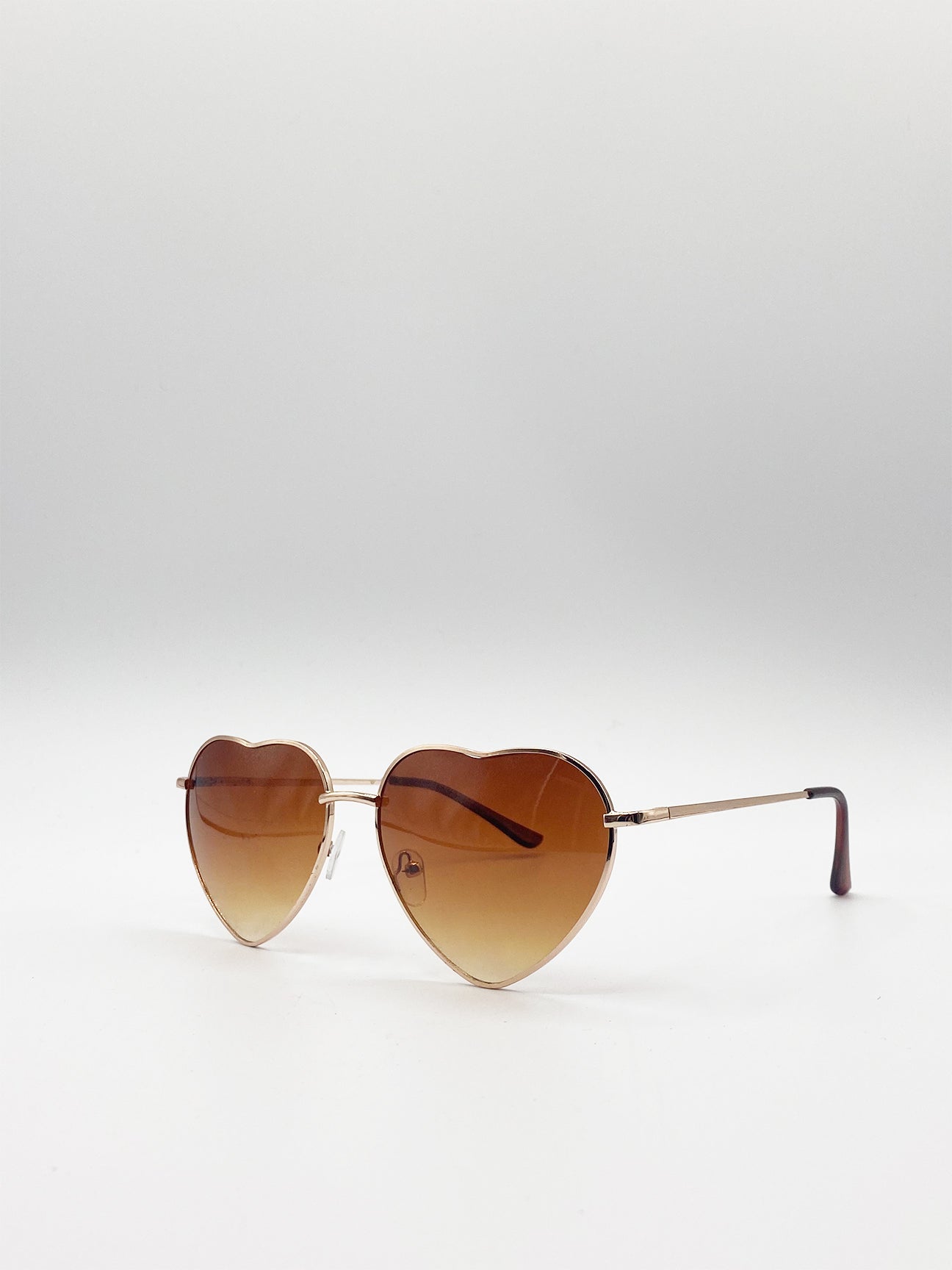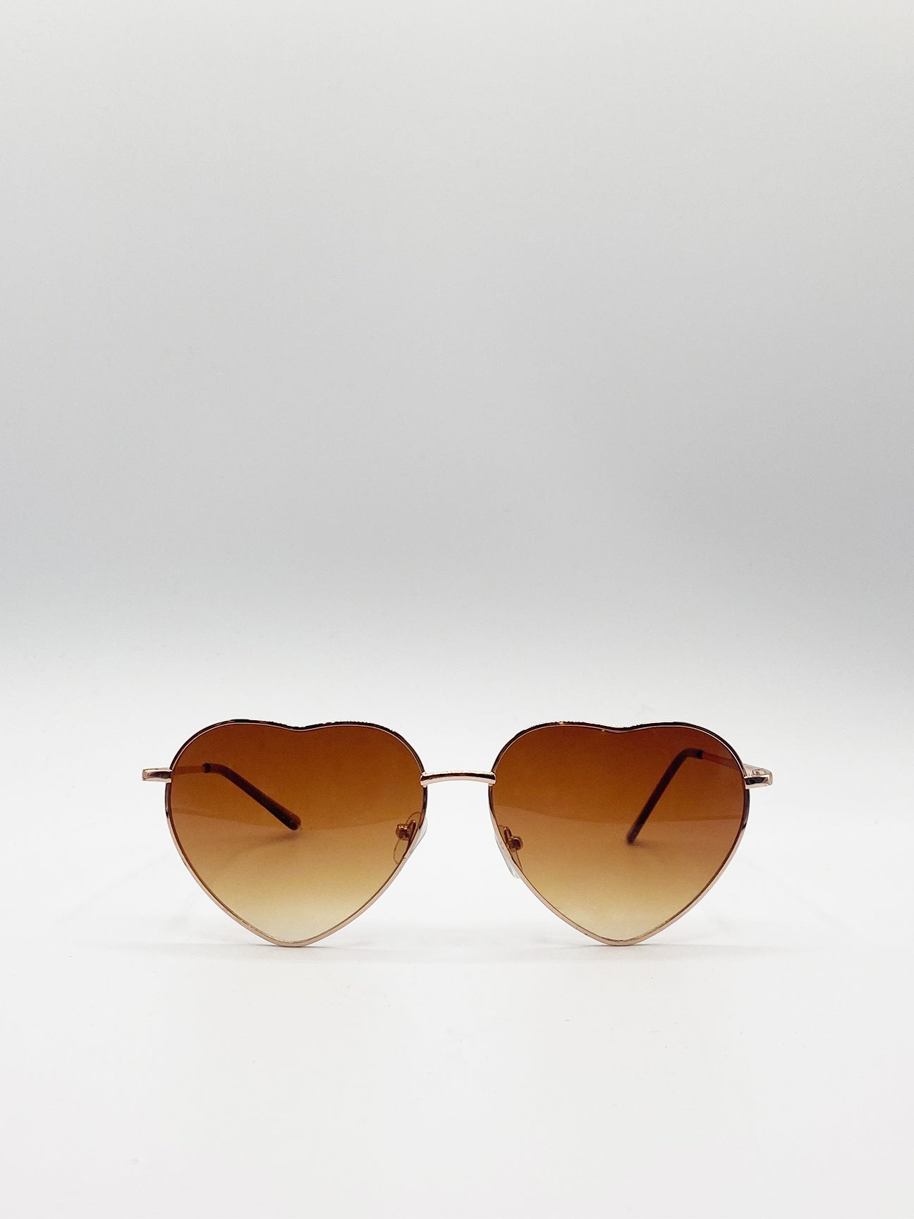 - Metal Frame Heart Shape Brown Lenses Sunglasses