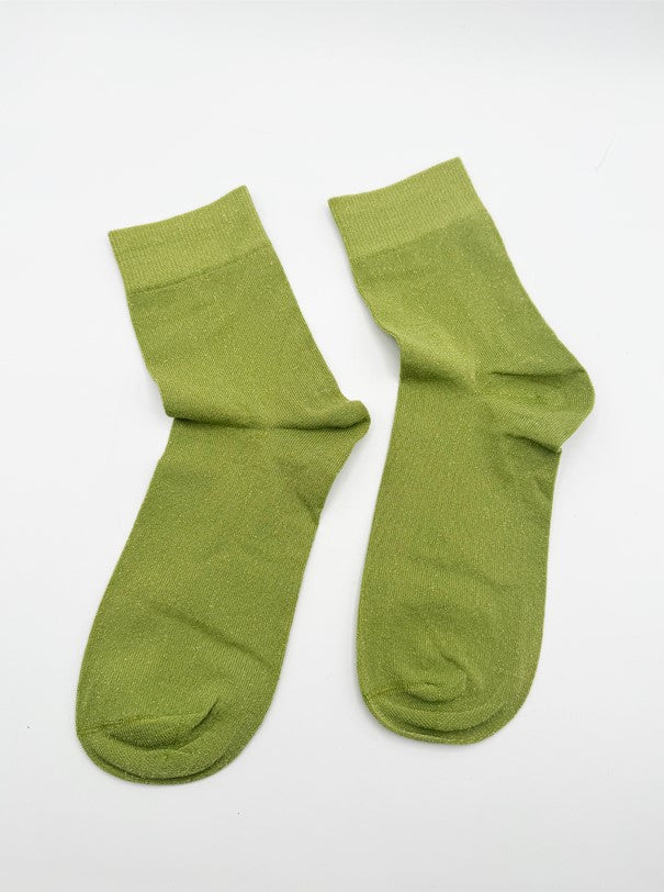 Green Glitter Socks by SVNX. Perfect for the gifting season! Treat yourself or someone special to this playful set of vibrant green glitter socks. With two pairs included, they're an easy way to add sparkle and fun to any outfit.